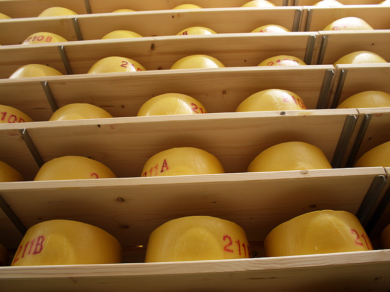 Depois de retirados dos cinchos, os queijos são levados para câmaras de cura, climatizadas, onde permanecem por um período mínimo de três meses.